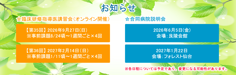 - 「第34回 臨床研修指導医講習会」のご案内を掲載しました。